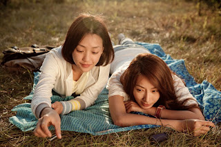 一開始是兩個女生在雪地中行走、坐電車、一邊閒聊開玩笑,